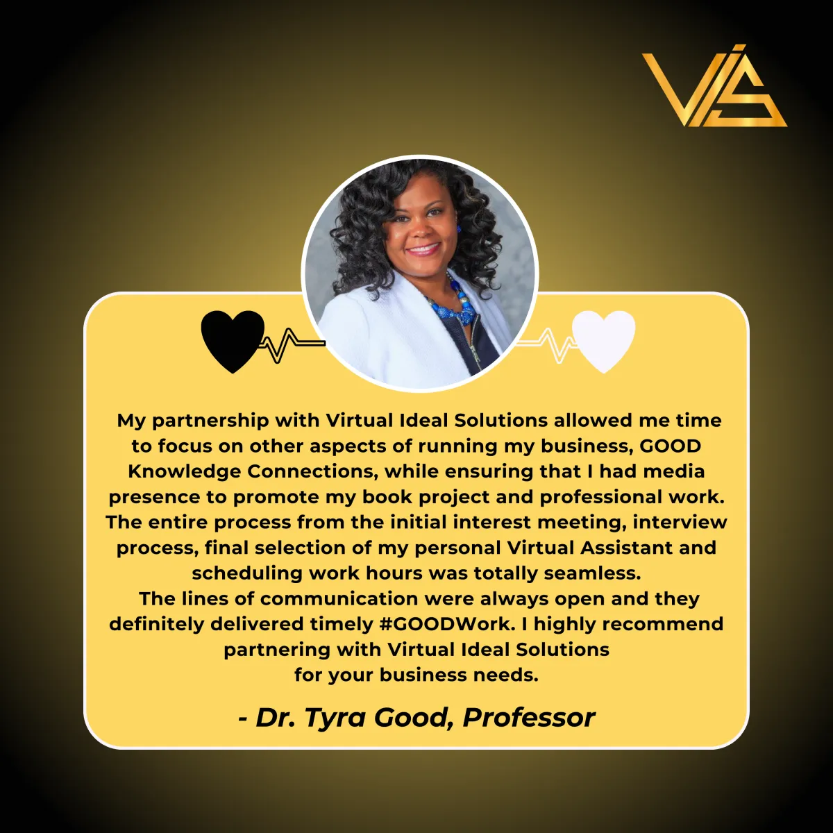 I cannot say enough good things about Virtual Ideal Solutions and the support they provide. My virtual assistant has been an absolute game changer for my business. From day one, the process was seamless, professional, and thoughtful. They took the time to truly understand my needs, my work style, and the pace of my business and matched me with a virtual assistant who is reliable, proactive, detail oriented, and incredibly capable. What I appreciate most is the peace of mind. I know things are being handled with care, excellence, and follow through, which frees me up to focus on high level strategy, creativity, and growth. Communication is clear, expectations are aligned, and the support feels like a true partnership rather than just task completion. If you are an entrepreneur, speaker, coach, or business owner looking to reclaim your time and operate with more ease and efficiency, I wholeheartedly recommend Virtual Ideal Solutions. They deliver quality, consistency, and support you can truly trust.